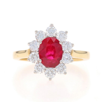 Yellow Gold Ruby & Diamond Halo Ring - 14k Oval 2.51ctw Floral