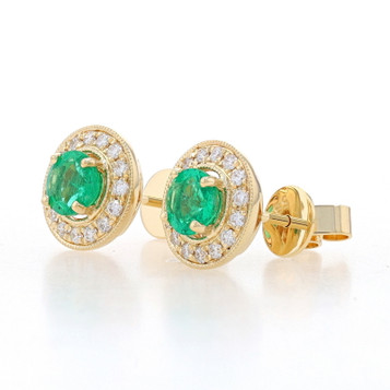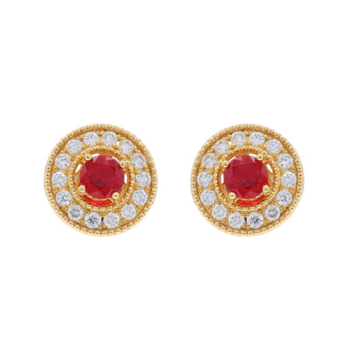 Yellow Gold Ruby Diamond Halo Stud Earrings - 14k Round 1.44ctw Pierced