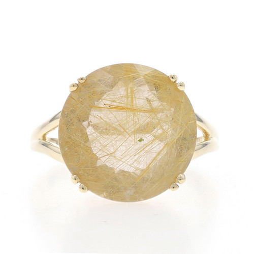 Yellow Gold Rutilated Quartz Cocktail Solitaire Ring - 10k Round 7.12ct