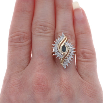 Yellow Gold Sapphire & Diamond Bypass Ring - 14k Marquise 1.47ctw Five-Stone