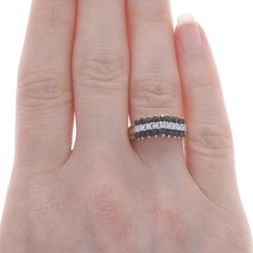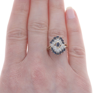 Yellow Gold Sapphire Diamond Cluster Cocktail Ring -14k Rnd .77ctw Stripe Tiered