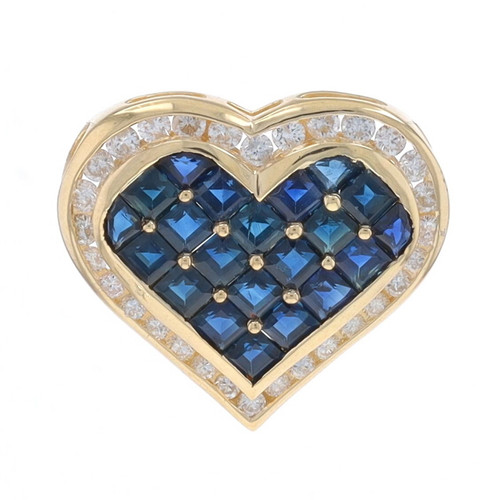 Yellow Gold Sapphire Diamond Heart Cluster Halo Pendant 14k Square & Pie 2.80ctw
