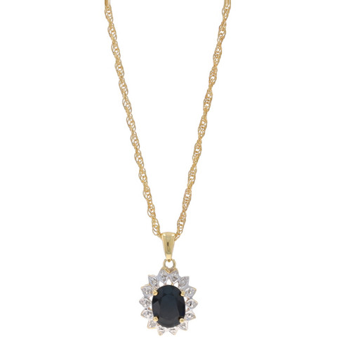 Yellow Gold Sapphire Diamond Necklace 20" - 10k Oval 1.55ct Flower Halo-Inspired