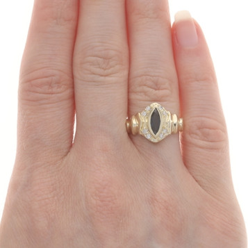 Yellow Gold Sapphire Diamond Ring - 14k Marquise .95ctw Tiered Five-Stone