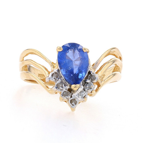 Yellow Gold Sapphire & Diamond Ring - 14k Pear 1.16ctw V Wishbone