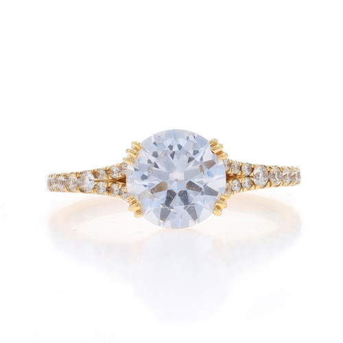 Yellow Gold Semi-Mount Engagement Ring 14k Round .25ctw CZ Cathedral fits ~7.5mm