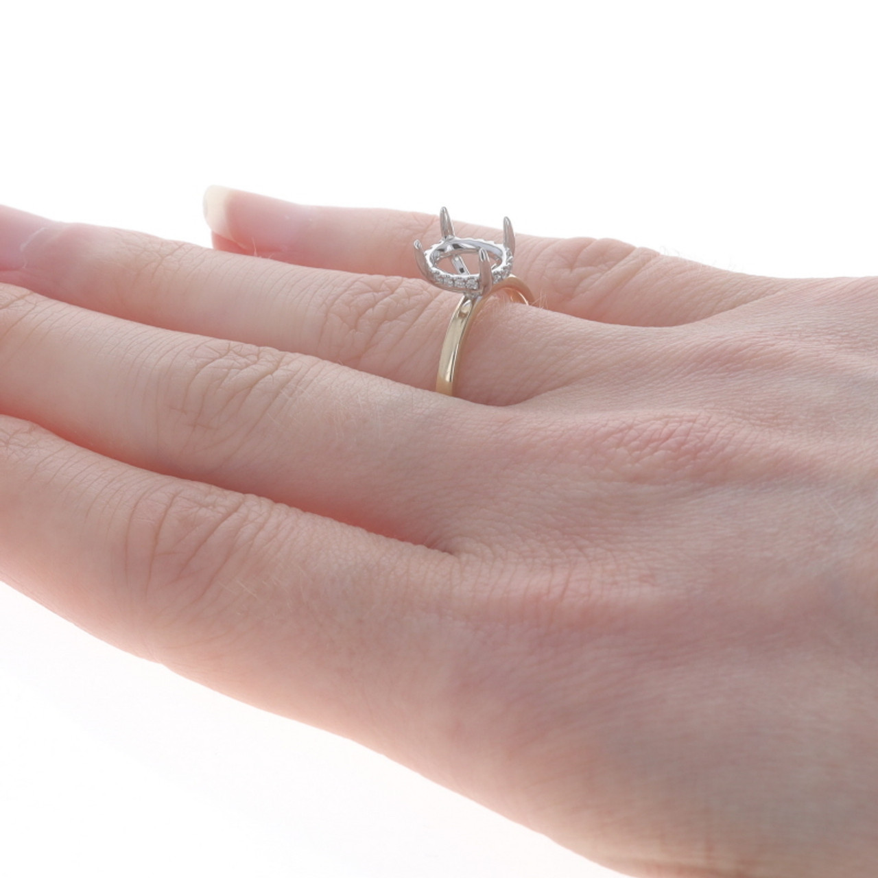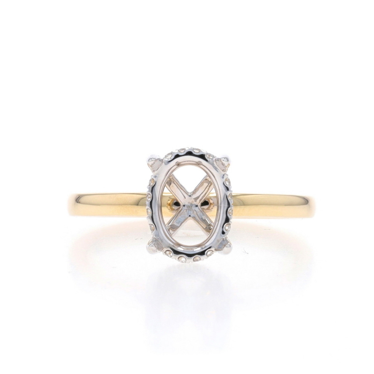 Yellow Gold Semi-Mount Hidden Halo Engagement Ring - 14k Diamonds ~8x6mm Oval