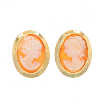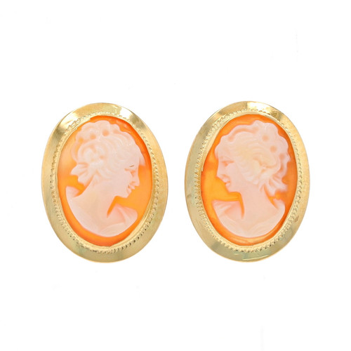 Yellow Gold Shell Large Stud Earrings - 18k Carved Cameo Silhouette Pierced