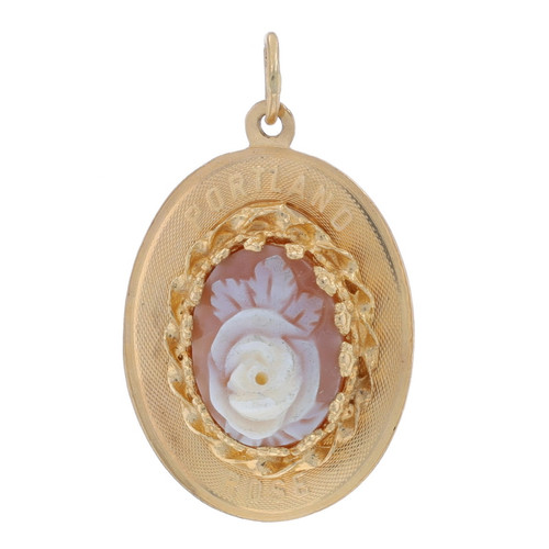 Yellow Gold Shell Portland Rose Pendant - 14k Carved Cameo
