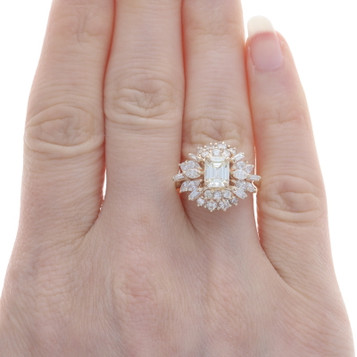 Yellow Gold Simulated Emerald & Diamond Ring - 14k Emerald Cut .20ctw