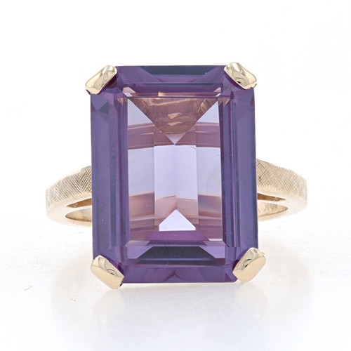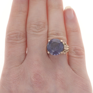 Yellow Gold Lab-Created Color Change Sapphire Vintage Solitaire Ring 10k 12.12ct
