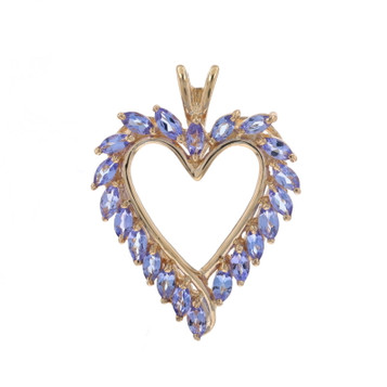 Yellow Gold Tanzanite Heart Wreath Pendant - 10k Marquise 1.26ctw Love