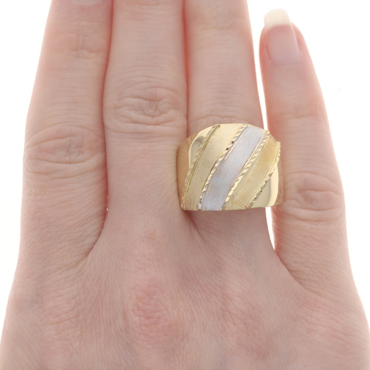 Yellow Gold Textured Stripe Dome Statement Band - 18k Italy Ring Sz 8 1/2