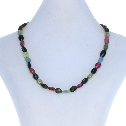 Yellow Gold Tourmaline Beaded Strand Necklace 15 3/4" - 18k Checkerboard Beads