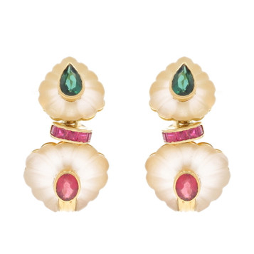 Yellow Gold Tourmaline Ruby Rock Quartz Dangle Earrings 18k Pear 2.44ctw Pierced