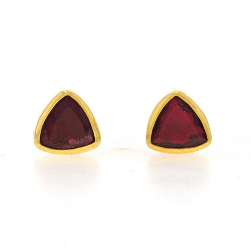 Yellow Gold Tourmaline Stud Earrings - 18k Trillion 4.20ctw Pierced