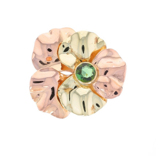 Yellow Gold Tourmaline Vintage Wild Pansy Solitaire Brooch 14k .60ct Flower Pin