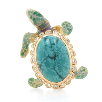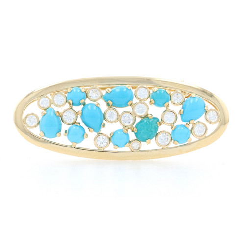 Yellow Gold Turquoise & Diamond Brooch - 18k Round .70ctw Oval Cluster Pin