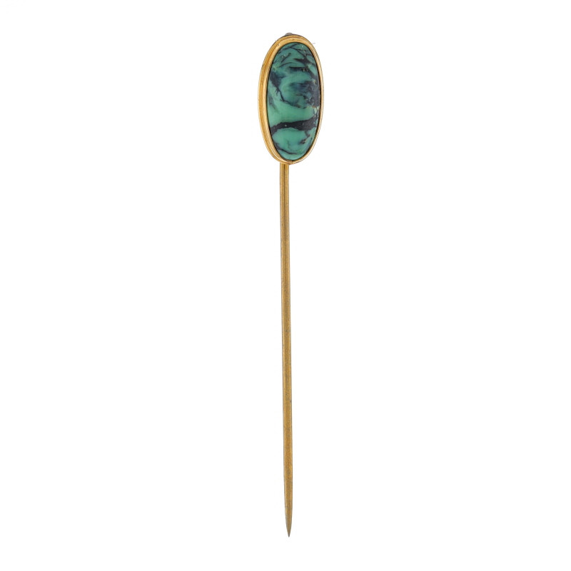 Yellow Gold Turquoise Edwardian Solitaire Stickpin - 14k Oval Cabochon Antique