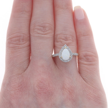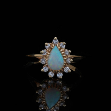 Yellow Gold Turquoise & Seed Pearl Vintage Halo Ring - 14k Pear Cabochon Rope