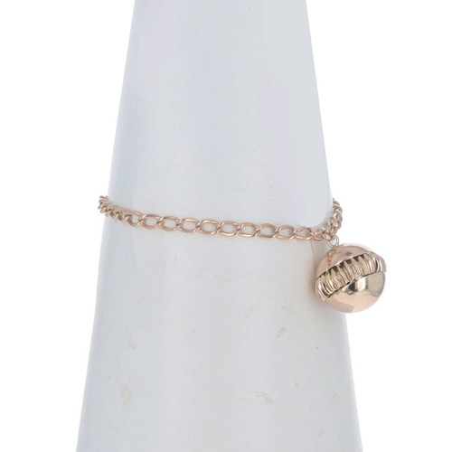 Yellow Gold Victorian Orb Charm Bracelet 6 1/4" - 14k Antique Ball Curb Chain