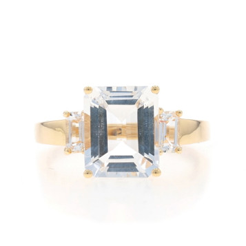 Yellow Gold White Topaz Three-Stone Ring - 10k Emerald Cut 5.18ctw